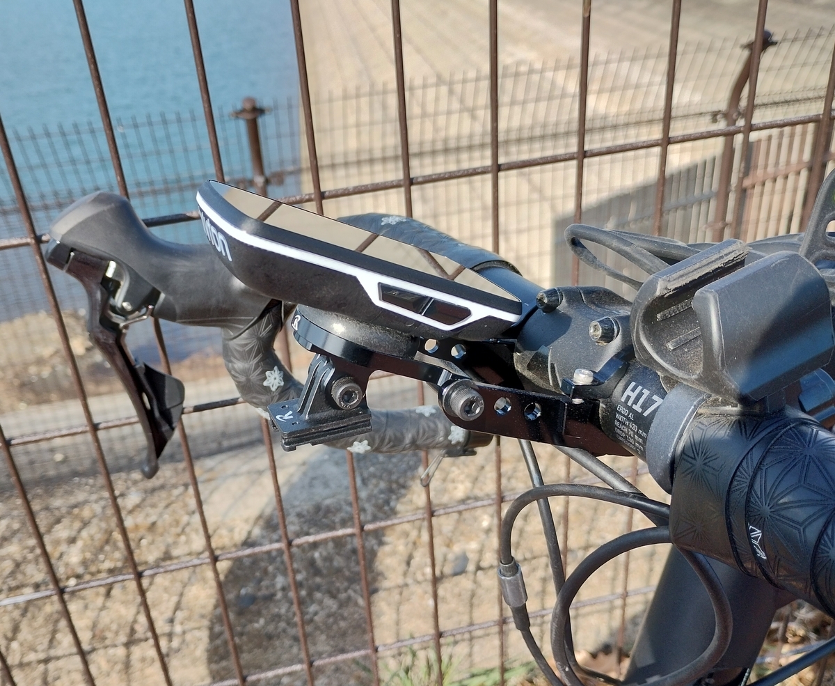 サイコン下にキャットアイ用のマウントを付けたので、今使っているB01というライトにキャットアイマウントへの変換アダプターを取り付けたら隣につけているライトマウントが取り外せ、ハンドル周りがスッキリしそう。