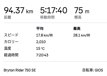 当日は上野駅までの自走も含めると100キロ以上走っていたのと、前半だいぶ向かい風だったので結構疲れた。
